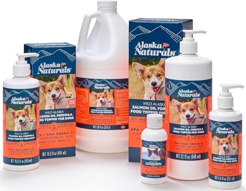 Alaska Naturals Wild Alaskan Salmon Fish Oil for Dogs Skin and Coat – EPA + DHA Omega 3 Oil - Fatty Acids Dog Supplements - Fur Coat and Brain Health - Natural Liquid Food Topper – 15.5 oz. Pump