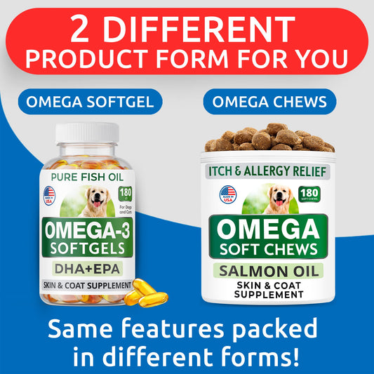 BARK&SPARK Omega 3 for Dogs - 180 Fish Oil Treats for Dog Shedding, Skin Allergy, Itch Relief, Hot Spots Treatment - Joint Health - Skin and Coat Supplement - EPA & DHA Fatty Acids - Salmon Oil