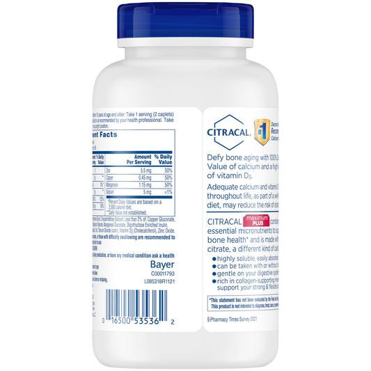 Citracal Maximum Plus, 650 mg Calcium Citrate, easily absorbed and highly soluble with 25 mcg (1000 IU) Vitamin D3, Bone Health Support, Calcium Supplement for Ages 12+, 180 Count