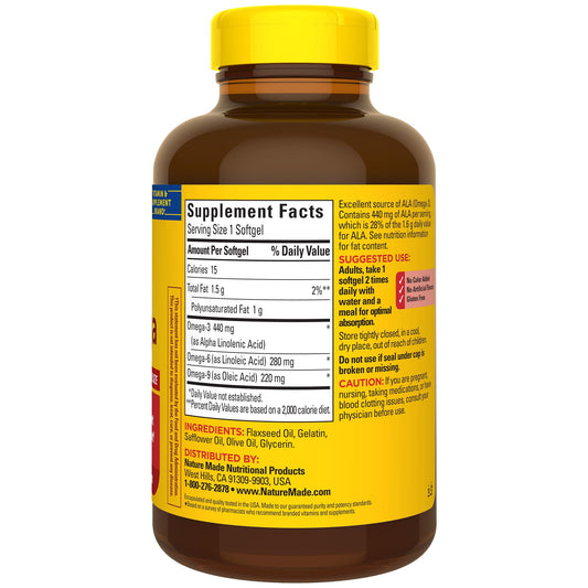 Nature Made Triple Omega 3 6 9, Flaxseed, Safflower, & Olive Oils, Healthy Heart Support, Fish Free Omega 3 Supplement, 150 Softgels, 75 Day Supply