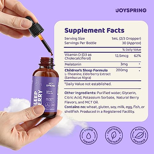SleepBerry Liquid Melatonin for Kids - Natural Sleep Aid with Elderberry and Vitamin D - Boosts Immune System While They Sleep (1 Fl oz)