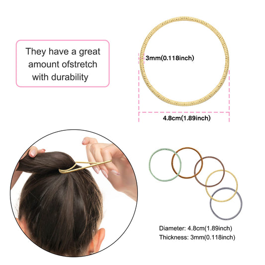 Elastic Hair Ties - 200 Count,Black Hair Ties for Women Girls,Men, No Damage Ponytail Hair Ties - Perfect for Fine, Curly Hair and Sensitive Scalps (Gold wire color mixing-200 count)