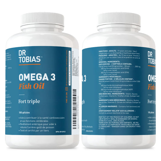 Dr. Tobias Omega 3 Fish Oil, 2000mg Triple Strength Omega 3 Supplement with 800mg EPA 600mg DHA Per Serving, Fish Oil Omega 3 Supplements for Heart, Brain & Immune Support, 180 Softgels, 90 Servings
