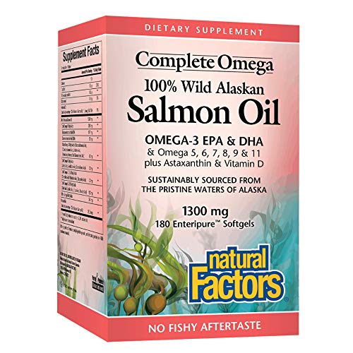 Complete Omega by Natural Factors, Wild Alaskan Salmon Oil, Supports Heart and Brain Health with Omega-3 DHA and EPA, 180 softgels (180 servings)