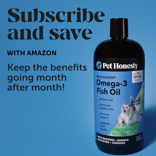 PetHonesty Omega 3 Fish Oil Supplement for Dogs & Cats (32oz), Wild Caught Omega 3 Fish Oil for Skin and Coat Health, Supports Shedding, Skin & Coat, Immunity, Joint, Brain & Heart, EPA + DHA