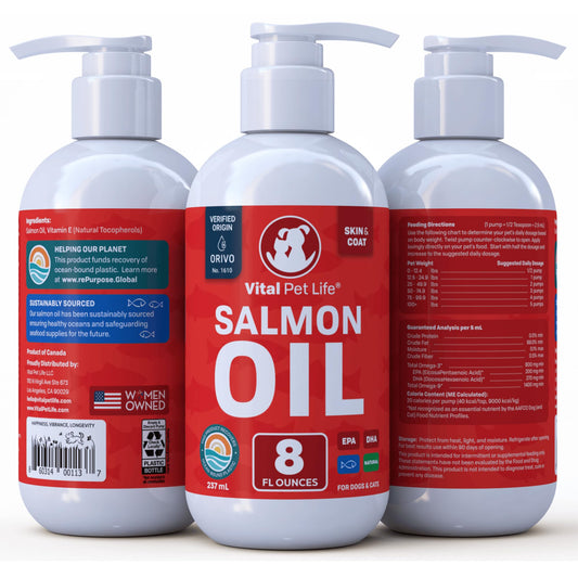 Salmon Oil for Dogs & Cats - Healthy Skin & Coat, Fish Oil, Omega 3 EPA DHA, Liquid Food Supplement for Pets, All Natural, Supports Joint & Bone Health, Natural Allergy & Inflammation Defense, 8 oz
