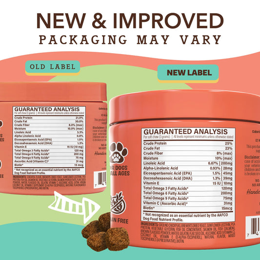Salmon Oil for Dogs - 180 Soft Chew Omega Treats for Skin and Coat - Fish Oil Blend of Essential Fatty Acids, Omega 3 and 6, Vitamins, Antioxidants and Minerals - Made in USA
