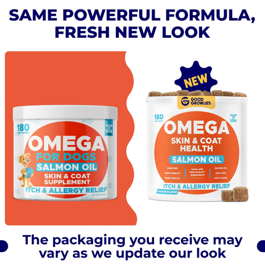 Omega 3 Fish Oil for Dogs (180 Ct) - Skin & Coat Chews - Dry & Itchy Skin Relief + Allergy Support - Shiny Coats - EPA&DHA Fatty Acids - Natural Salmon Oil Chews Promotes Heart, Hip & Joint Support