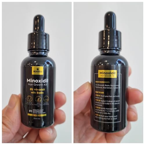 Beaueli 5% Minoxidil for Women Hair Growth Kit, Minoxidil for Men Beard Growth Kit, Hair Regrowth for Men, Hair Growth Serum, Hair Loss Treatments for Women and Men 30 ML, Black